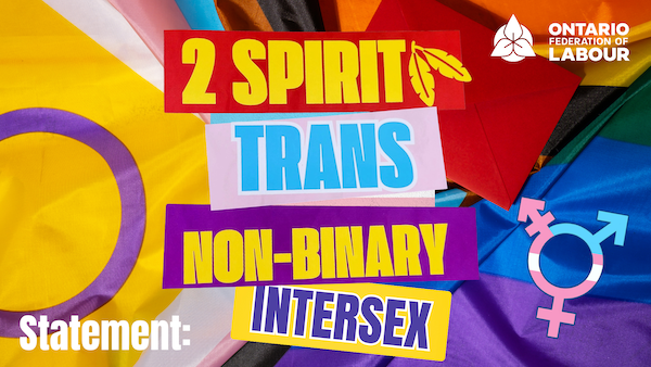 Uncategorized OFL STANDS IN SUPPORT OF TRANS, NON-BINARY, INTERSEX AND TWO-SPIRIT ONTARIANS 03/04/2026 SKAdmin Ontario Federation of Labour Statement in Support of Trans, Non‑Binary, Intersex, and Two‑Spirit Ontarians